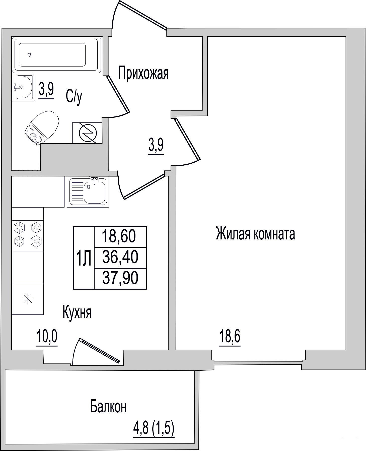 - 18.6 м²