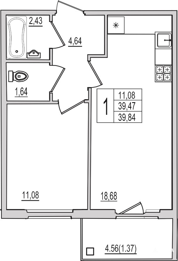 - 18.68 м²