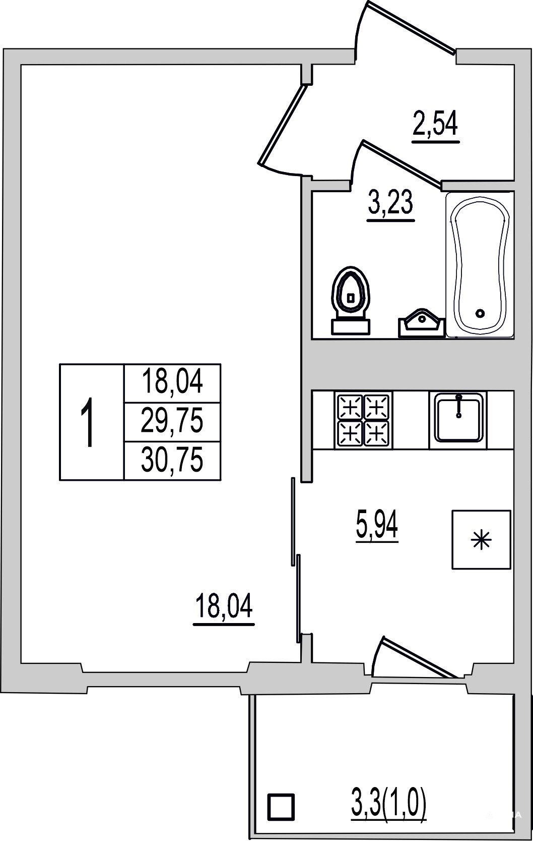 - 18.04 м²