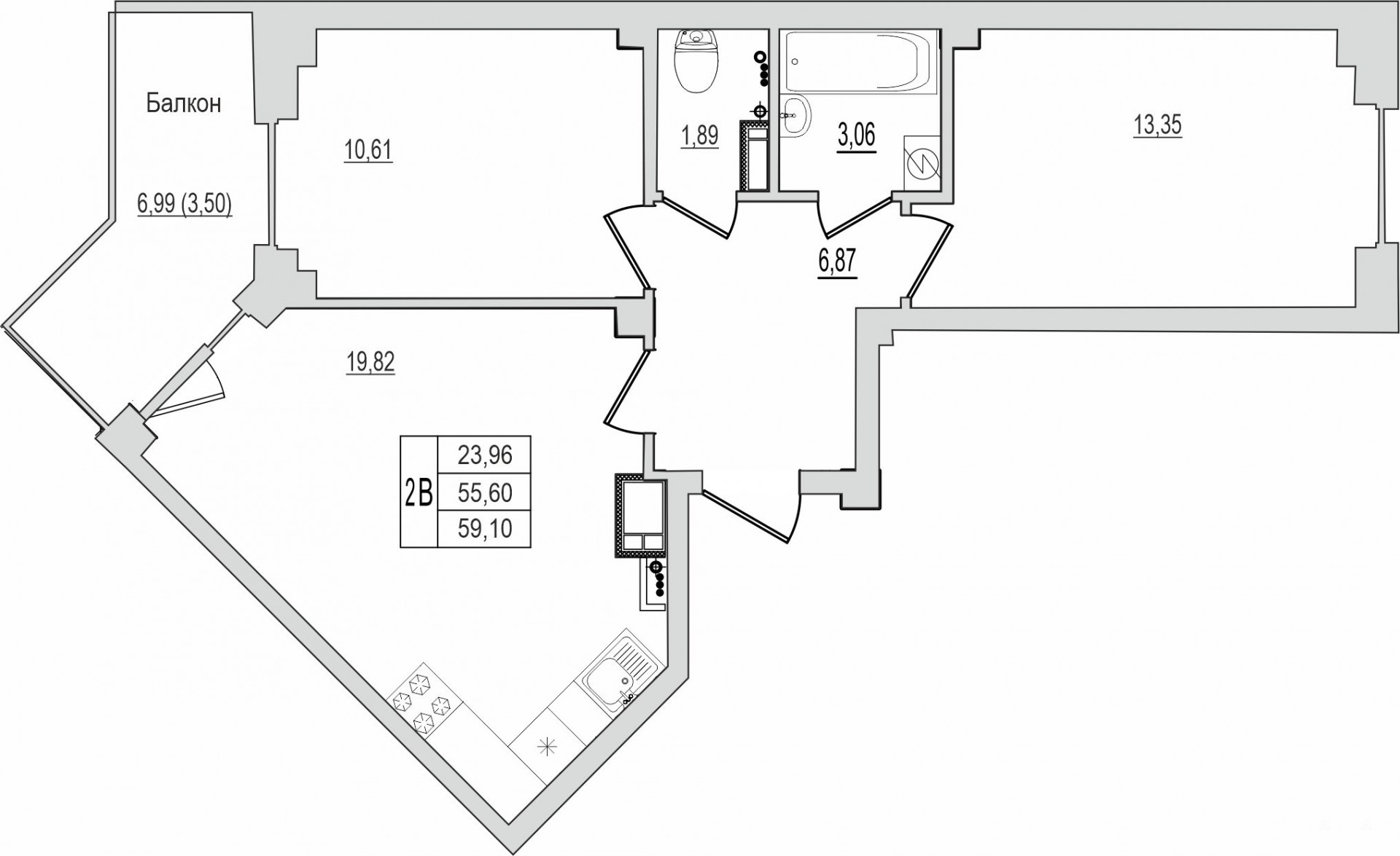 - 23.96 м²