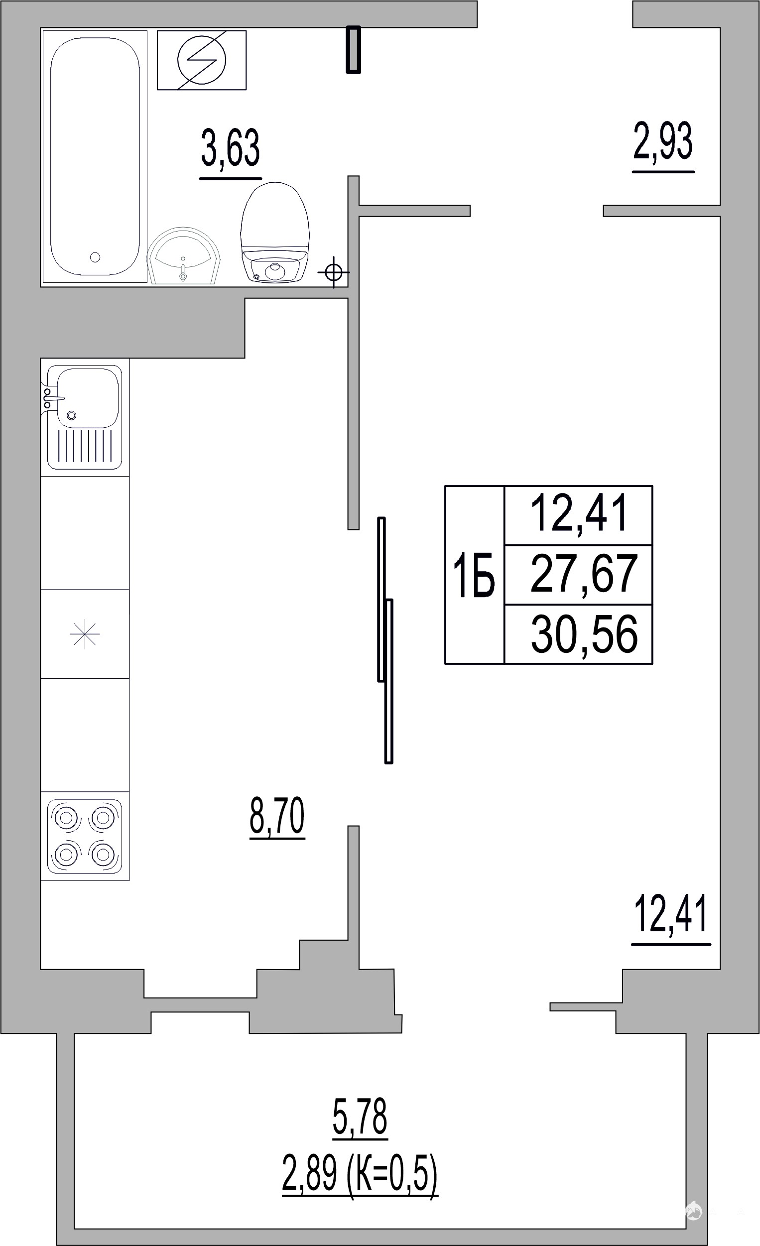 - 12.41 м²
