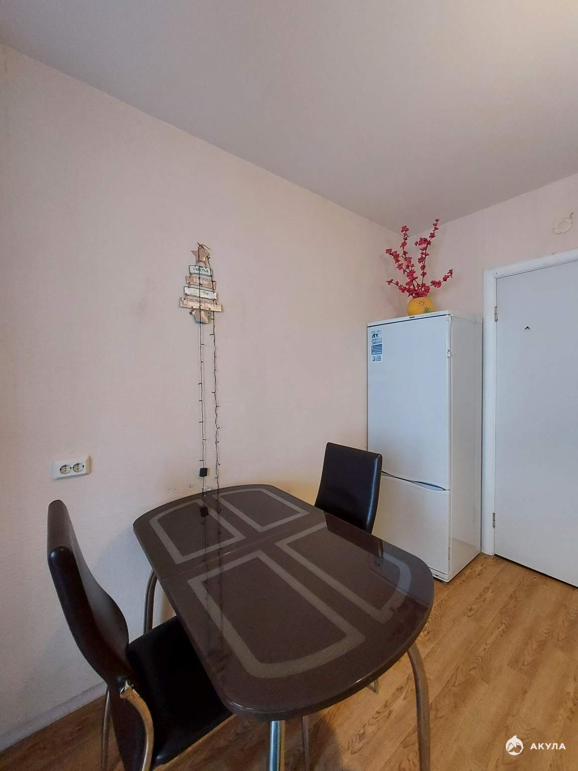 - удобная мебель: кухонный гарнитур, обеденная зона, вместительный встроенный шкаф и мягкий диван;