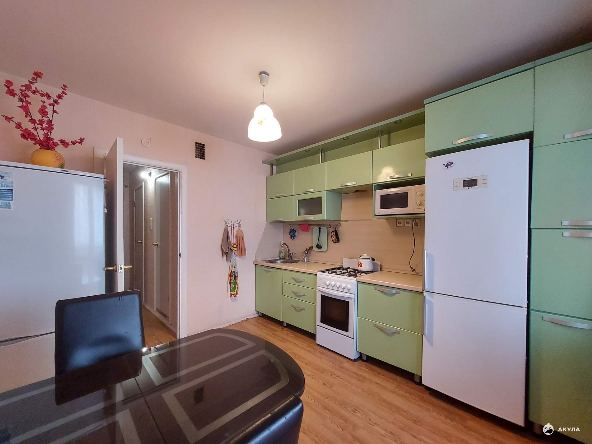 - необходимая техника: холодильник, газовая плита, микроволновая печь и стиральная машина — можно заезжать и жить сразу!
